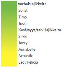 Kuvaus: Kiinteämaltoinen, hyvin aikainen sadon muodostaja. Vain vähän varhaislajikkeita myöhäisempi.
